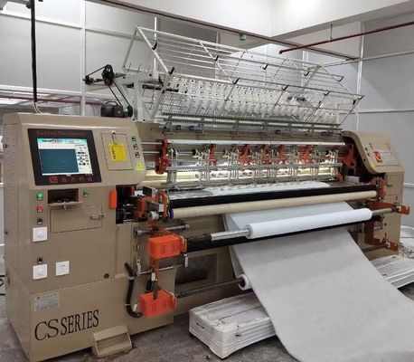 Questa macchina per fare coperte è una sorta di macchina per coprire con più aghi.Non serve un lavoratore per mettere l'otta nella copertura della coperta., poi fissare sul telaio. Sta lavorando con rotoli. Multi aghi lavora insieme, cucire con punti di design diversi. Dopo il quilting bene, ha bisogno di tagliare la dimensione appropriata,poi usare la macchina da cucire per cucire il bordo della copertaLa produzione è molto più elevata di quella della macchina a singolo ago per coprire le coperte.copertura del sedile, e famiglia